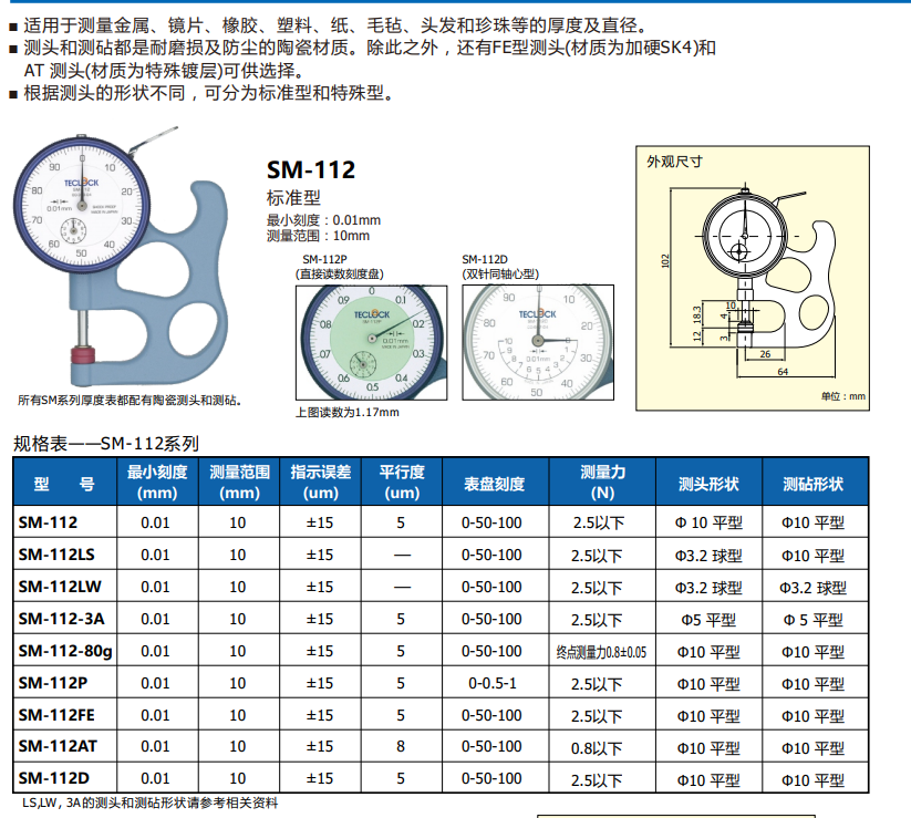 日本得乐TECLOCK SM系列厚度计